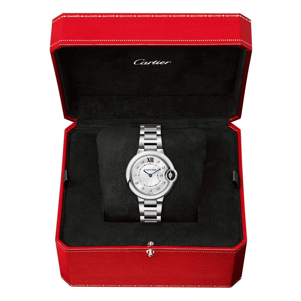 カルティエバロンブルー-ド-カルティエ33ミリメートルスチールのダイヤモンドダイヤルウォッチW4BB0020
