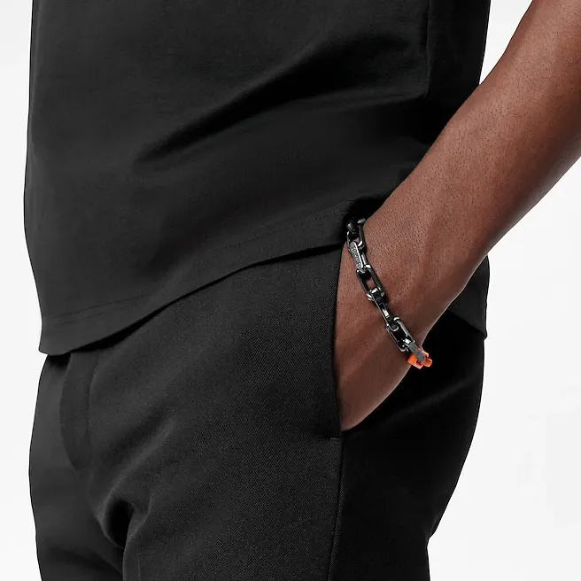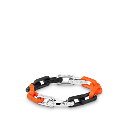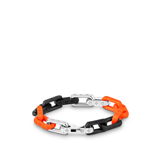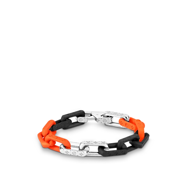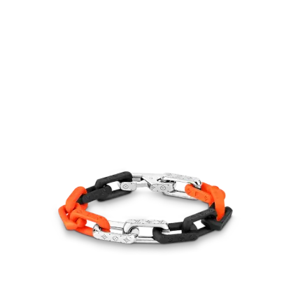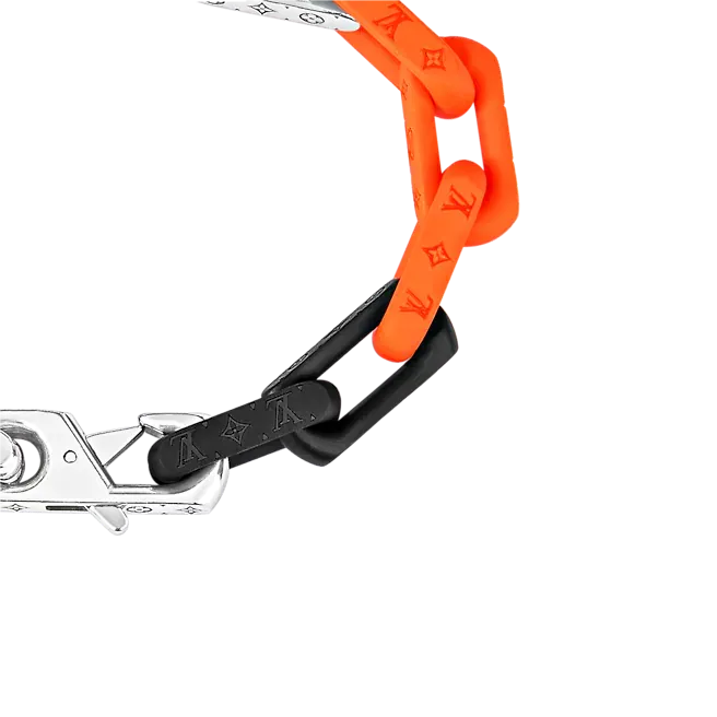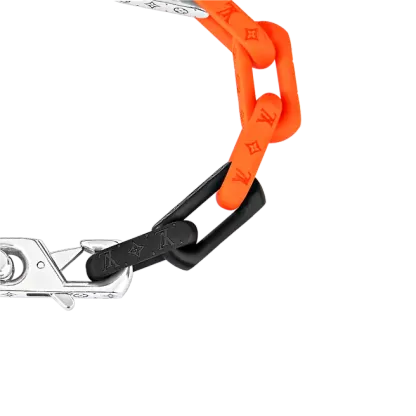 Virgil Abloh2019年秋冬コレクションで最初に発表されたパッチワークのアイデアは、このモノグラムチェーンブレスレットに引き継がれています。 混合された材料は、同じネックレスにも存在する現代のチェーンリンクを形作ります。 モノグラムの碑文は、絶妙な詳細を追加します。